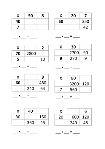 Missing Value 2 Digit Grid Method Multiplication Teaching Resources